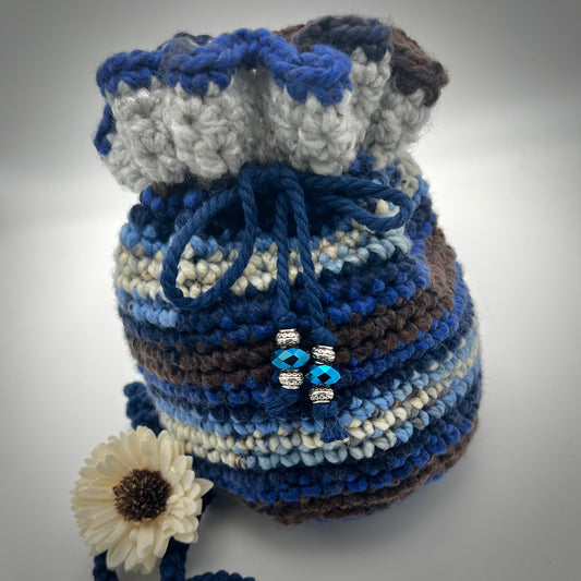 Multicolored Blue Boho Crocheted Crossbody Purse