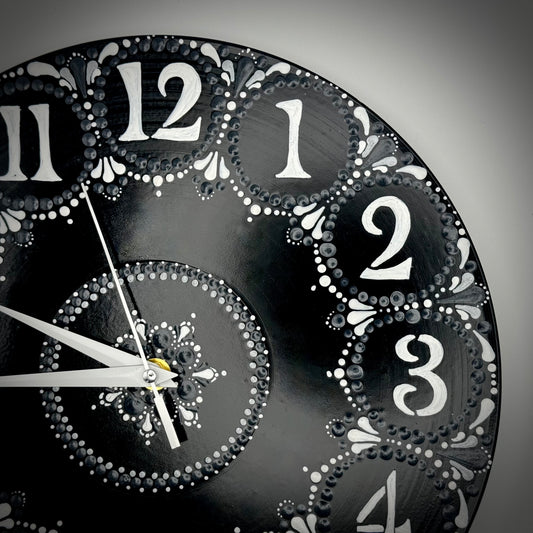 Album Record Vinyl Clocks; Black and White Monochrome Mandala