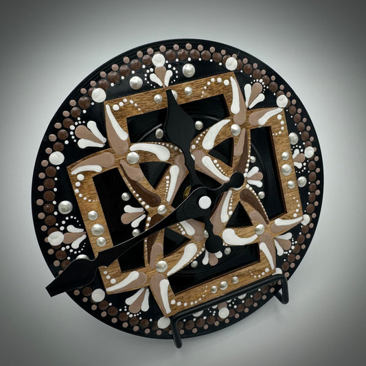 Art Clock on 45 Vinyl Record, Brown Tones Mandala with Wooden Inlay