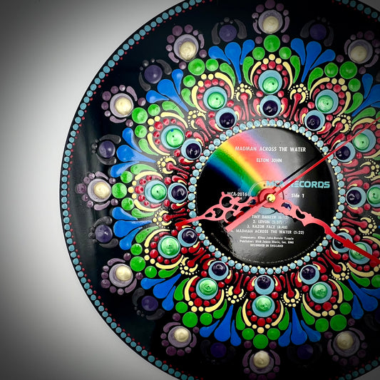 Elton John's "Madman Across the Water" Black Label Vintage Vinyl Record Clock: Original 1971 Pressing