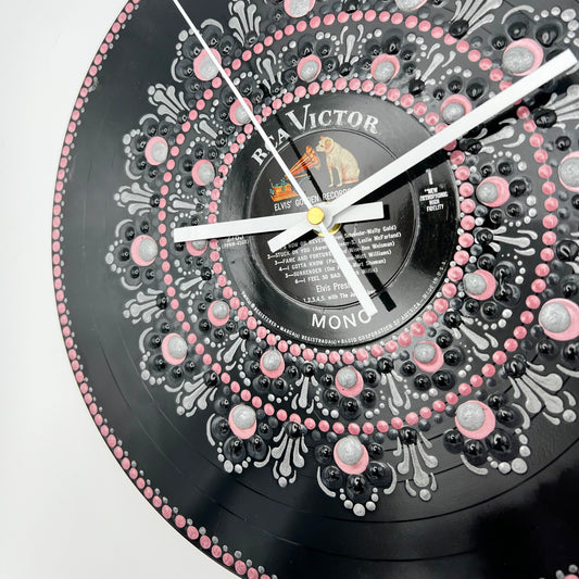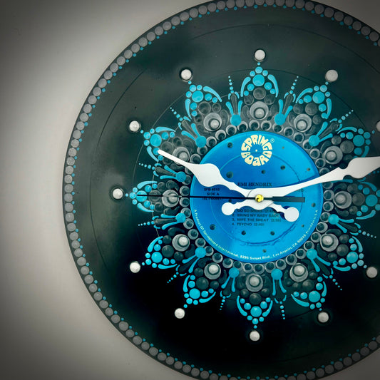 Unique and originally designed 12 inch clocks made from upcycled vintage vinyl records albums. Preserving the integrity of the label, yet elevating the music into functional art. Explore various artists and titles paired with hand-painted one-of-a-kind artwork. Great idea for amazing gifts.