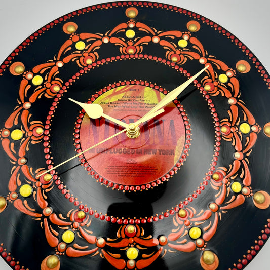 Nirvana, Unplugged, Vintage Vinyl Record, Hand-Painted Clock