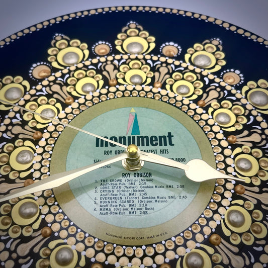 Roy Orbison's "Greatest Hits" Vintage Vinyl Record Clock: Yellow Mandala, Original 1964 Pressing