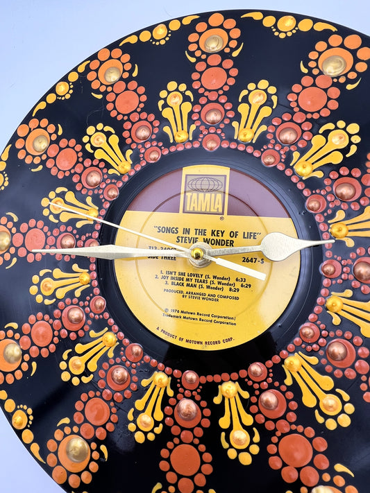 Stevie Wonder's "Songs in the Key of Life" Orange Vintage Vinyl Record Clock: Original 1976 Pressing
