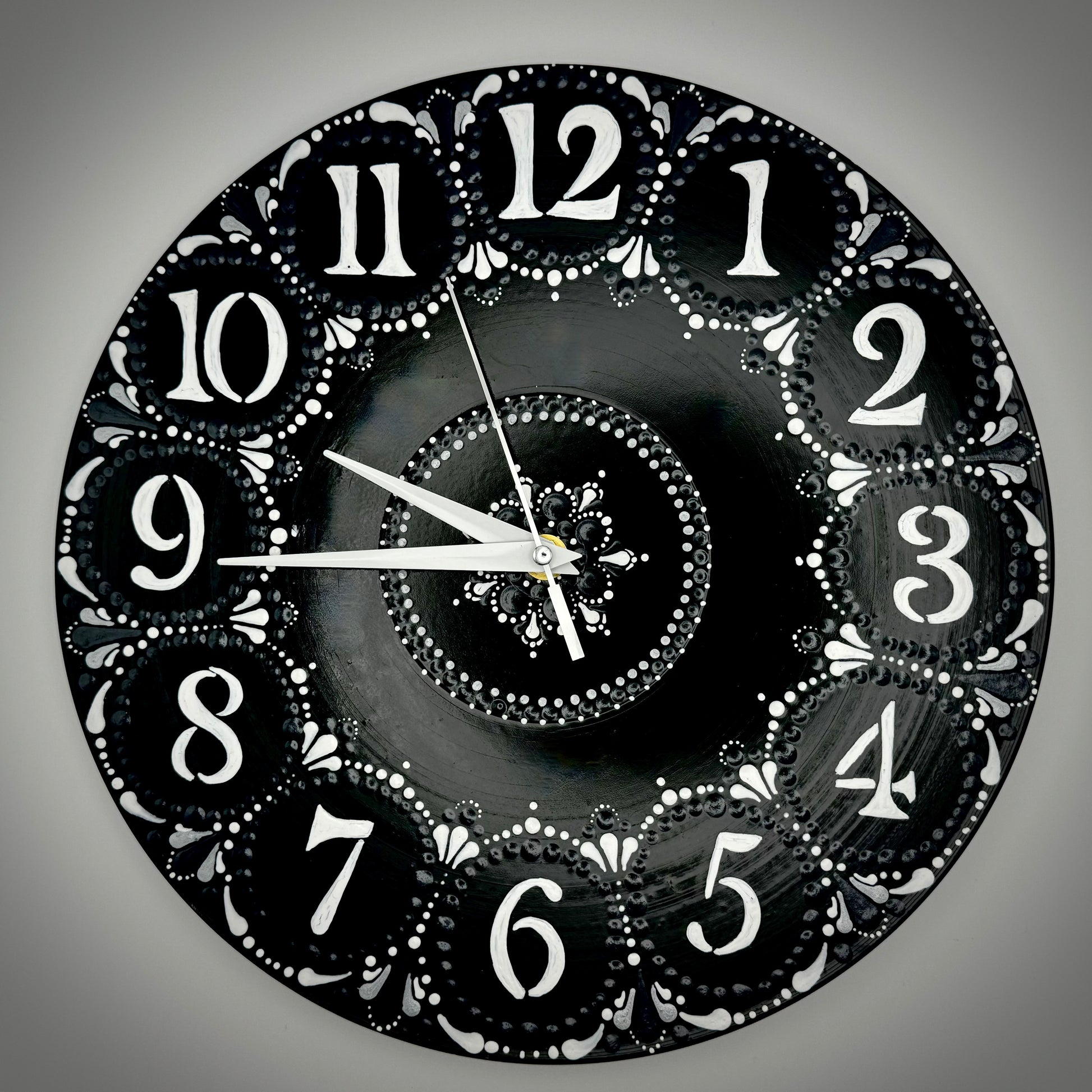 Album Record Vinyl Clocks; Black and White Monochrome Mandala