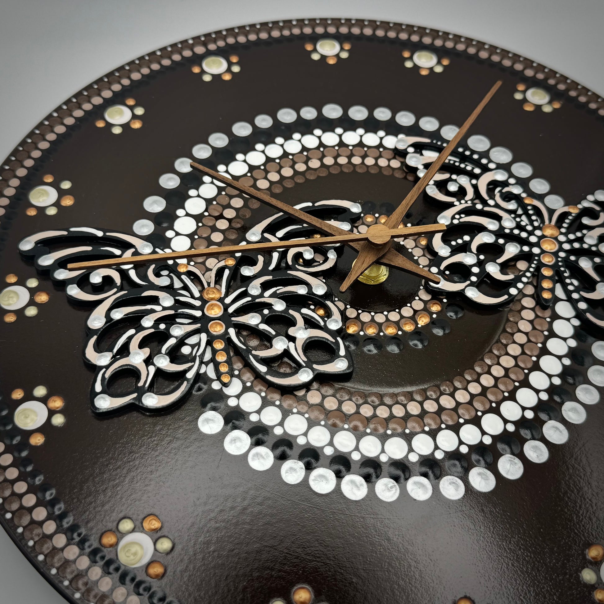 Album Record Vinyl Clocks; Brown Butterfly Mandala with Wood Inlay