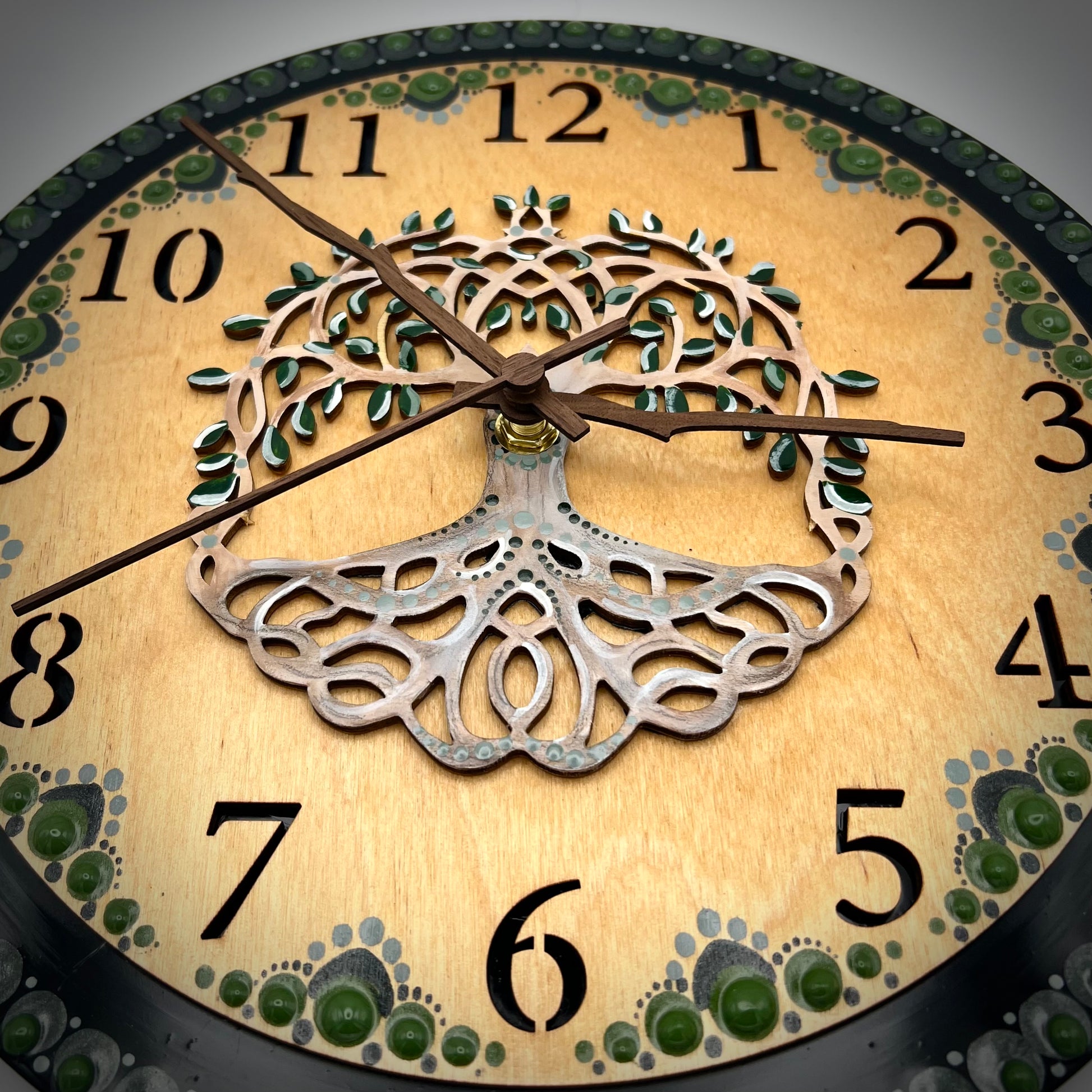 Album Record Vinyl Clocks; Green Tree of Life with Stained Wood Number Inlay