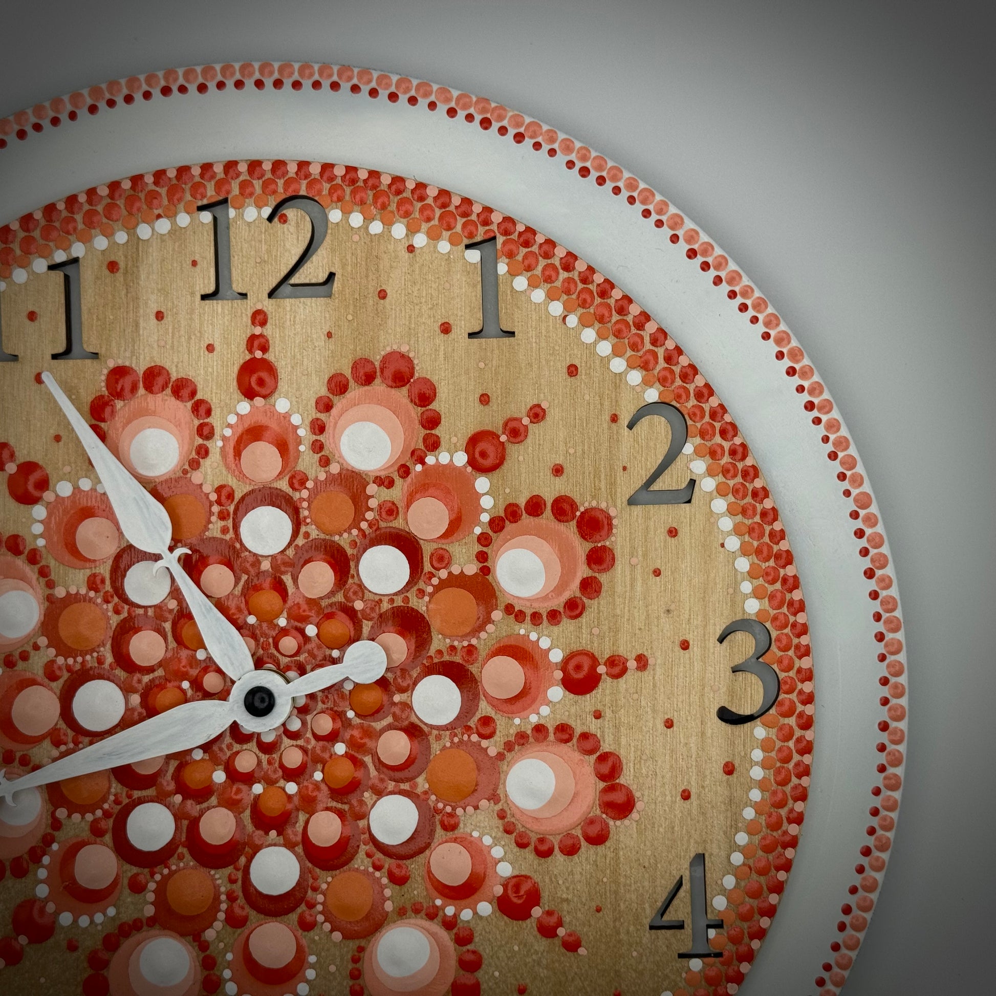 Album Record Vinyl Clocks; Orange and White Mandala with Wooden Inlay Numbers