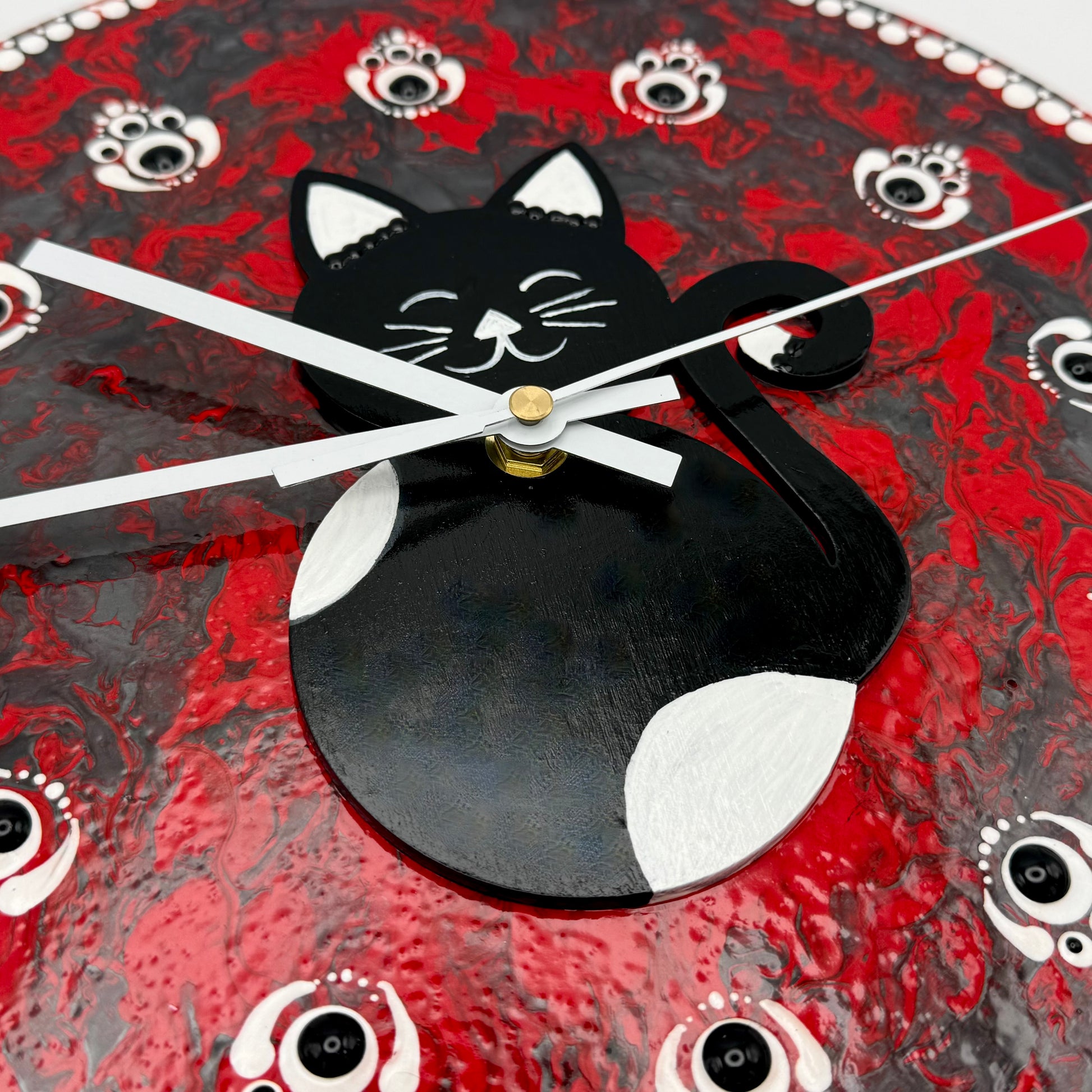 Album Record Vinyl Clocks; Paint Pouring Black and White Wooden Cat