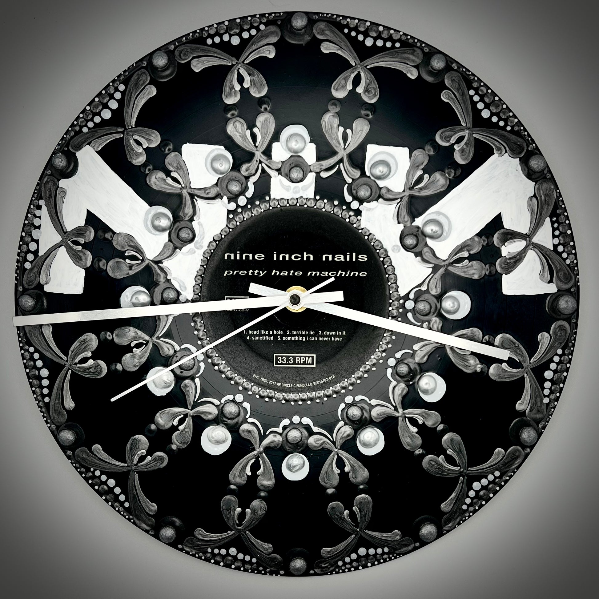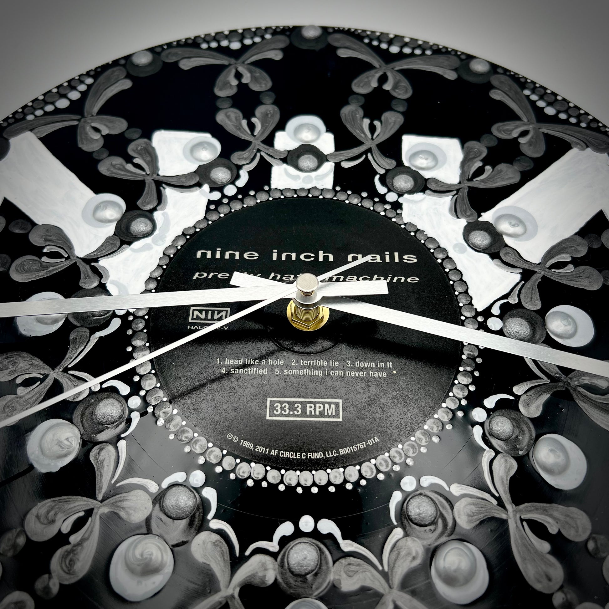 Nine Inch Nails "Pretty Hate Machine"; Silver Manadala Wall Clock; Vintage Vinyl Record