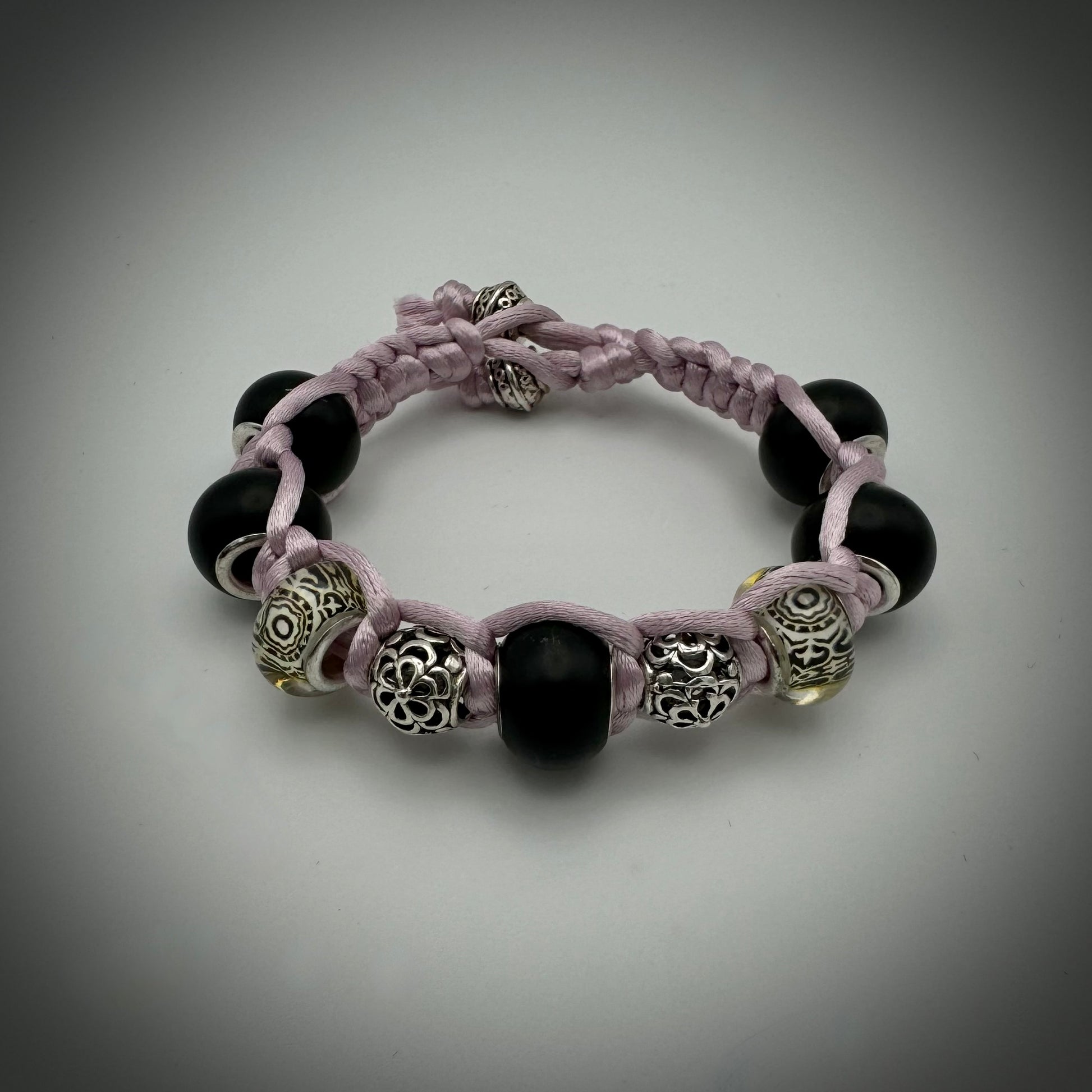 Pale Purple, Black, and Silver Silk Macrame Bracelet