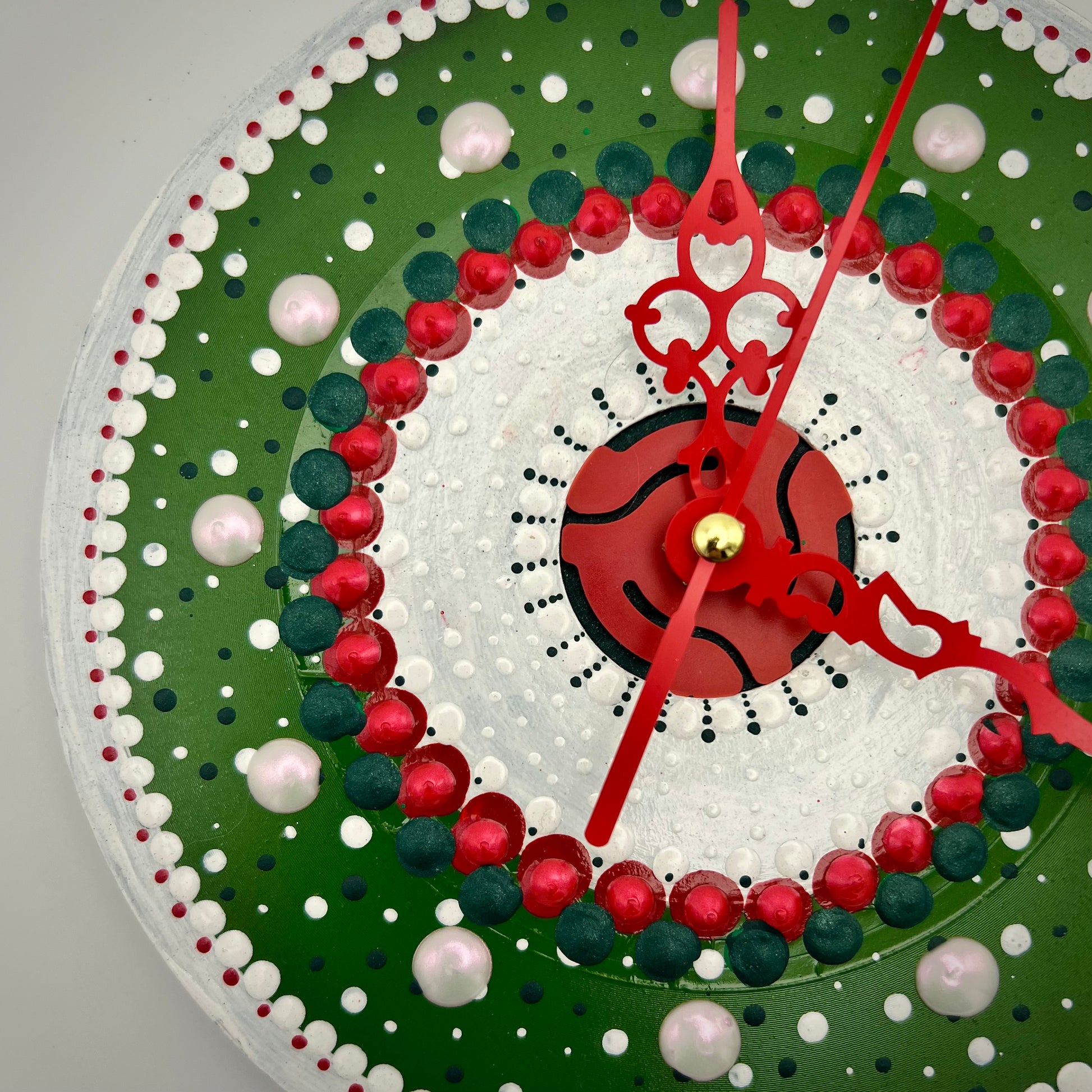 Christmas Mandala Art Clock on 45 Vinyl Record, Holiday Clock