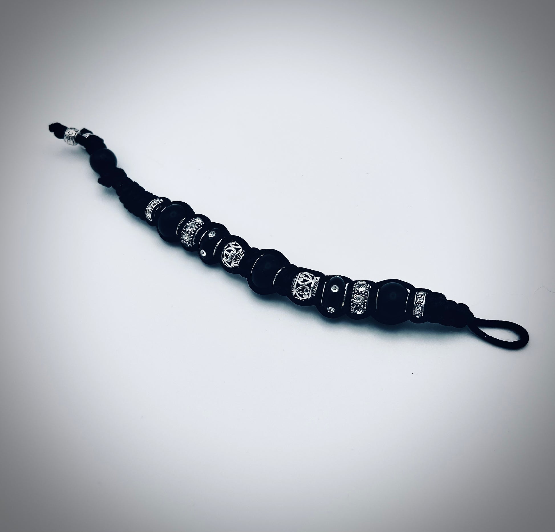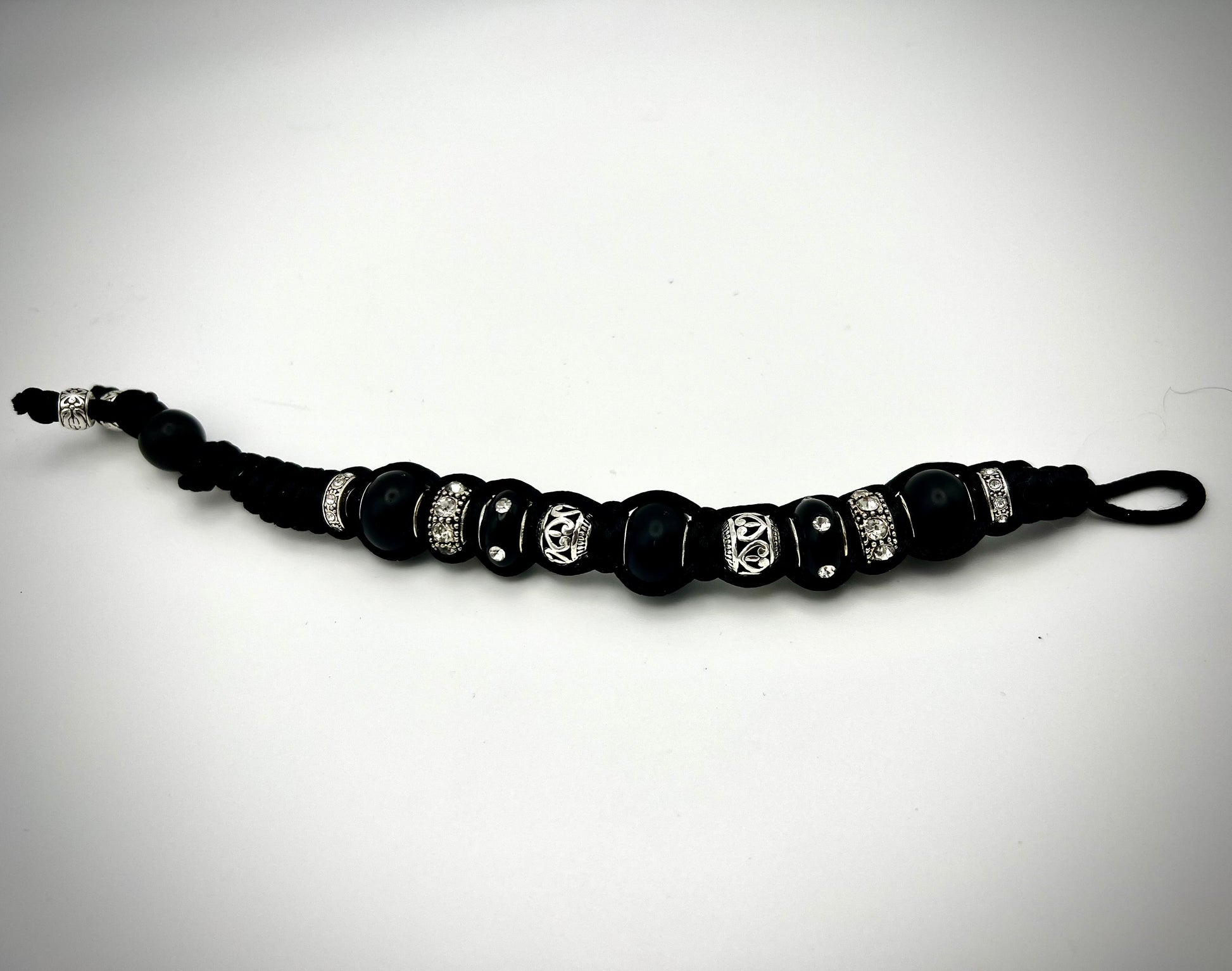 Handmade silk corded bracelet with silver metal filagree and glass beads. Knotted fastener adjust from 8 to 9 inches. Great gift idea! Perfect for casual and dress attire.