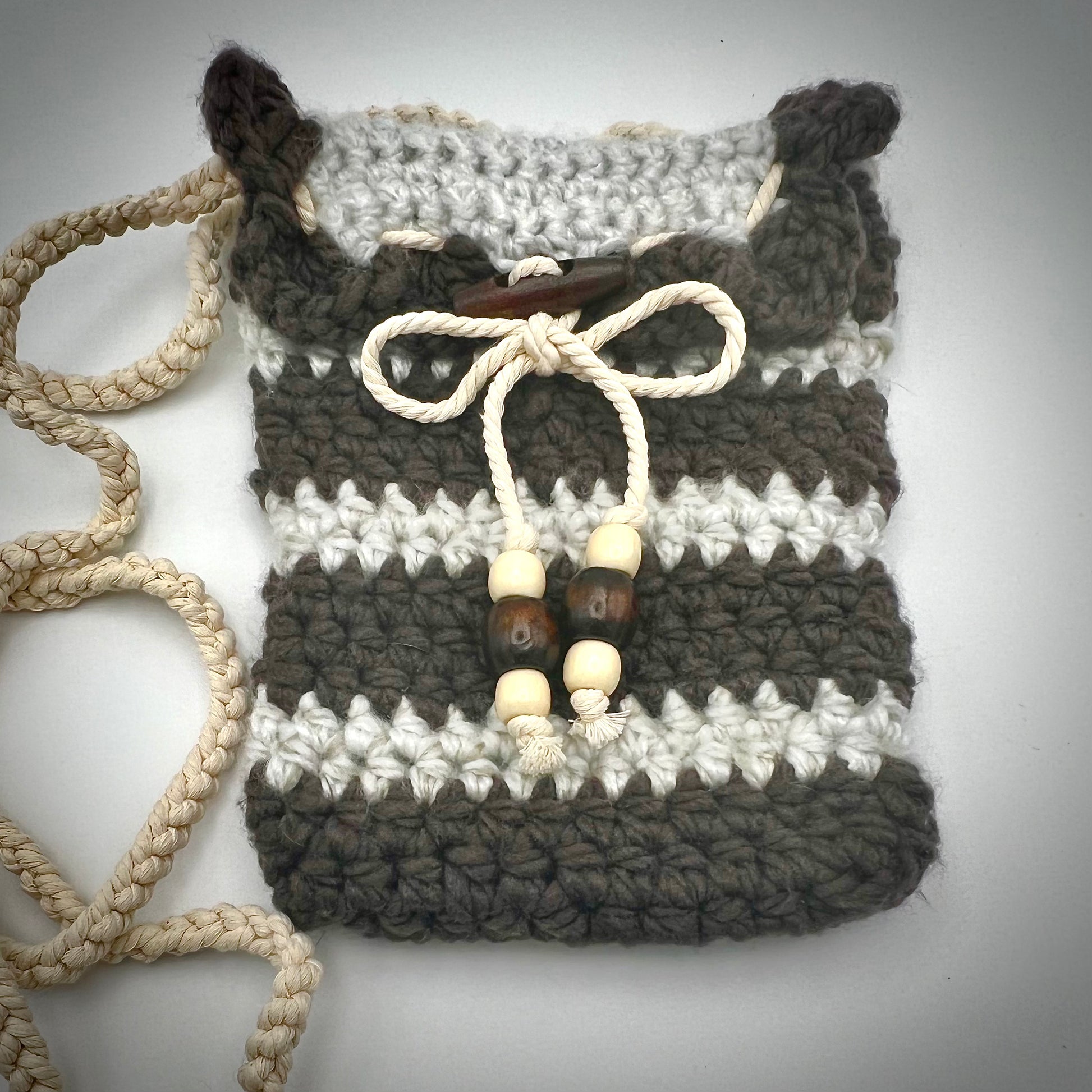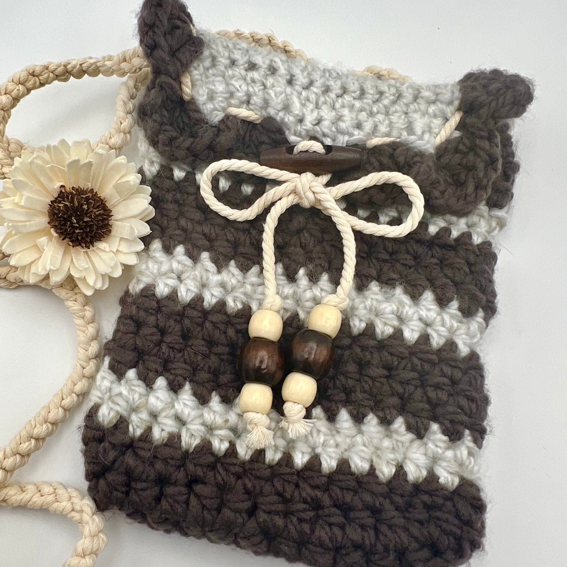 Chocolate Brown Crossbody Satchel with Wooden beaded accents. Perfect to carry the essentials for concerts, special events, and outings. Handmade with extra thick reinforced yarn and hand braided cotton straps.