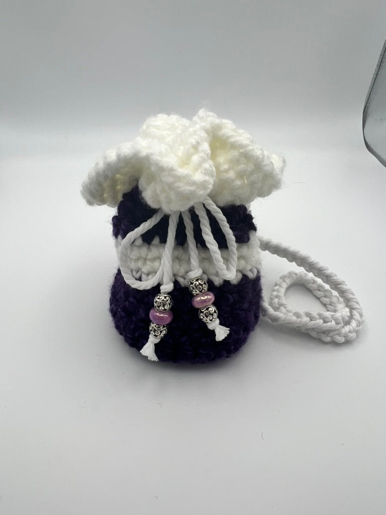 Small Purple & White Crocheted Hand Satchel