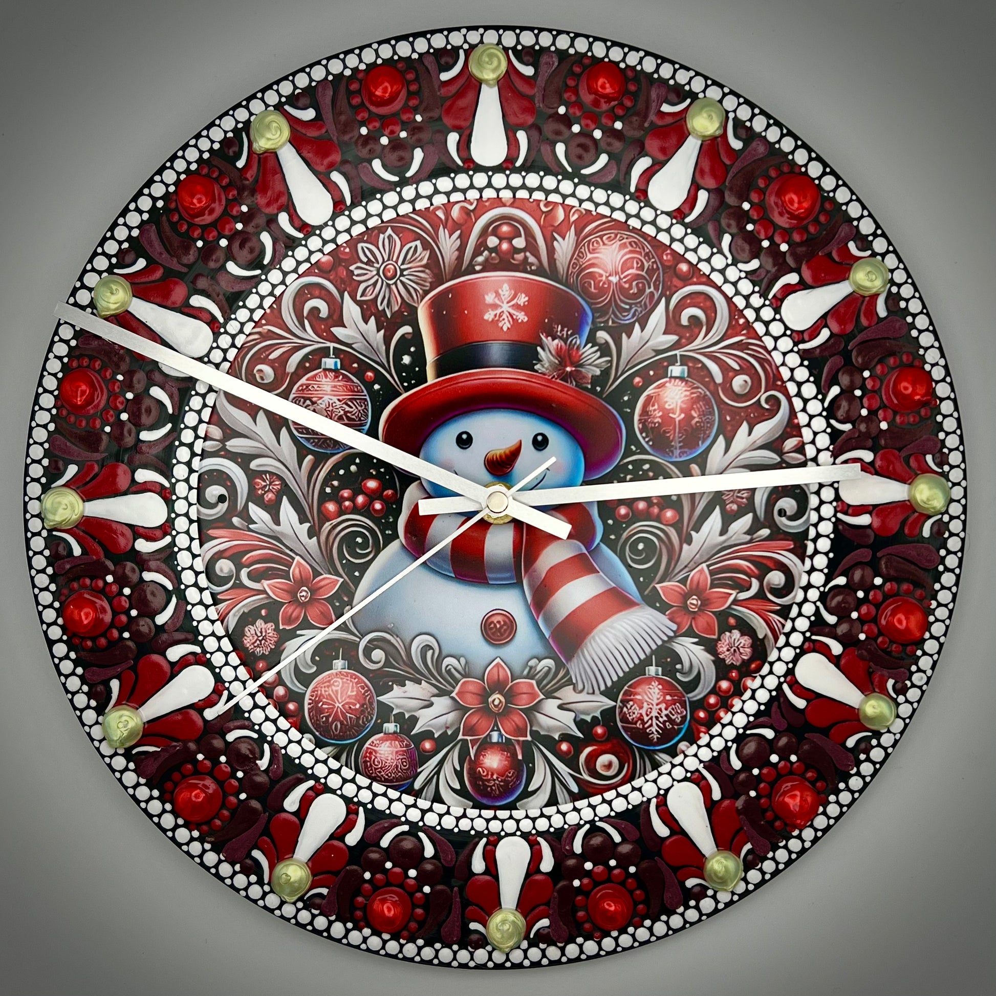 Snowman Mandala Art Clock on Vinyl Record, Holiday Clock
